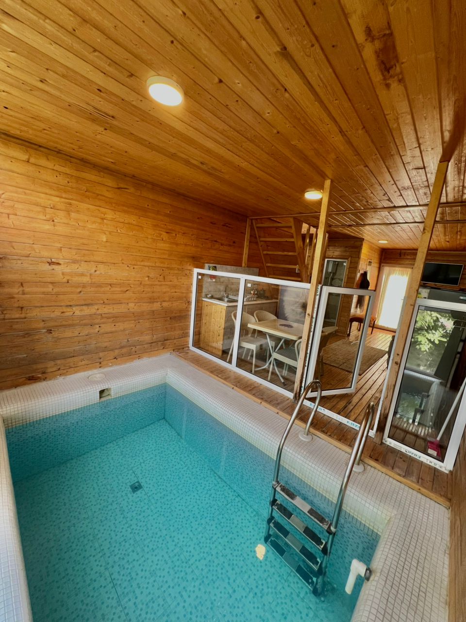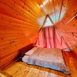 کلبه سوئیسی طرح دوبلکس ذوزنقه شکل زیبا با بنای ۶۰ در زمین ۱۰۰۰متر واقع شده که سه کلبه در این فضا طراحی و اجرا شدن . دارای یکخواب با تخت دو نفره در بالا و پایین کلبه حال با مبل تخت خواب شو، استخر و مینی آشپزخانه با لوازم کامل آشپزی میباشد، همچنین سرویس ایرانی دارد. از نظر سرمایش کولر اسپلیت و گرمایشی بخاری گازی دارد، تراس در طبقه بالای کلبه که میز و صندلی چهار نفره قرار داده شده.